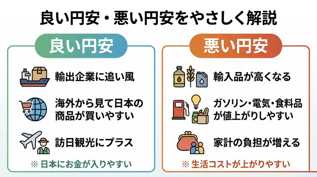 一口に「円安」といっても、その中身は一枚岩ではありません。ここでは、両者を明確に定義しておきます。