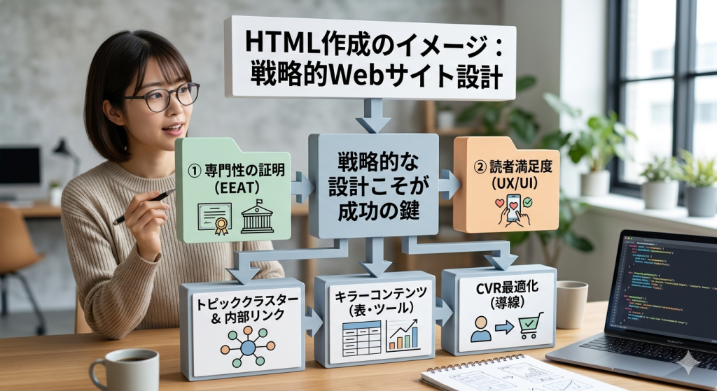 ブログを運営する際、多くの人が「まずは100記事」という言葉に縛られ、記事を量産することに必死になります。しかし、現代のWEBサイト制作において最も重要なのは、記事の数ではなく、「読者が何を求め、どう動くか」を計算し尽くした「設計」です。
